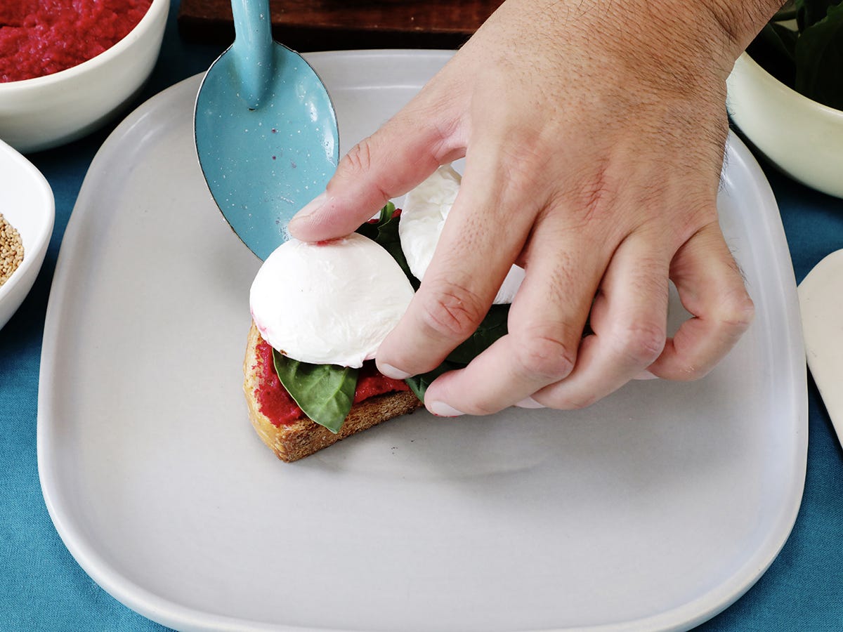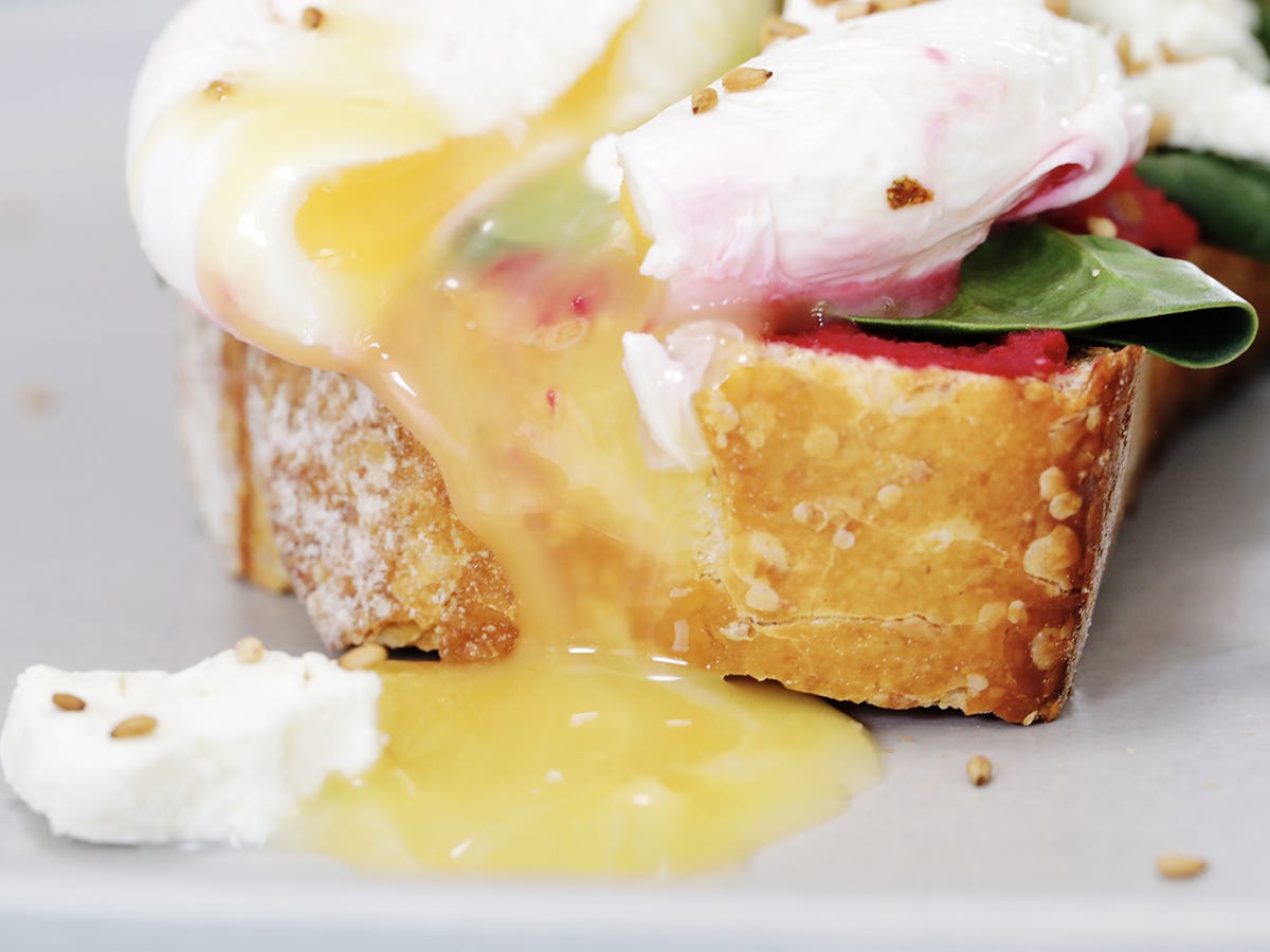 Your beet hummus toast with poached egg is ready to eat! Looks so good!