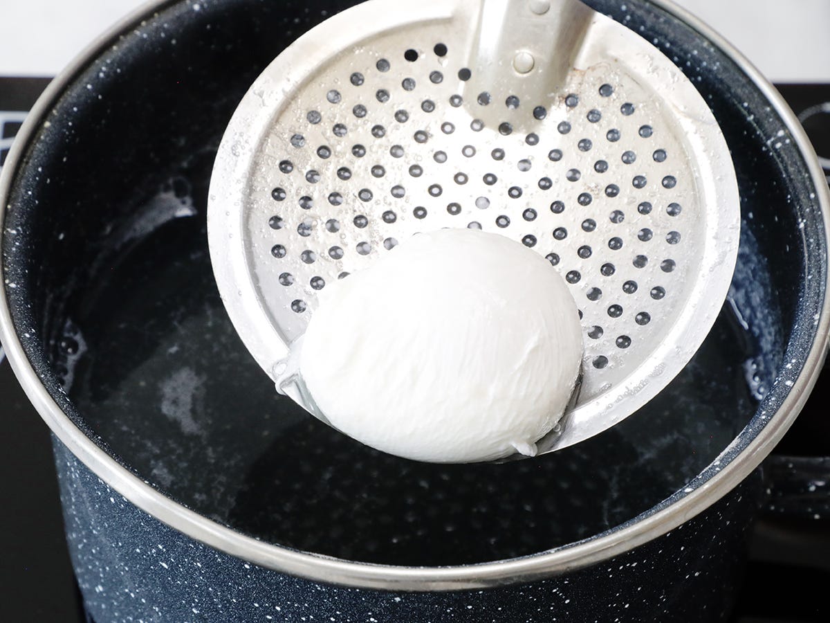 Once cooked, use a slotted spoon to remove the egg from the water and drain.