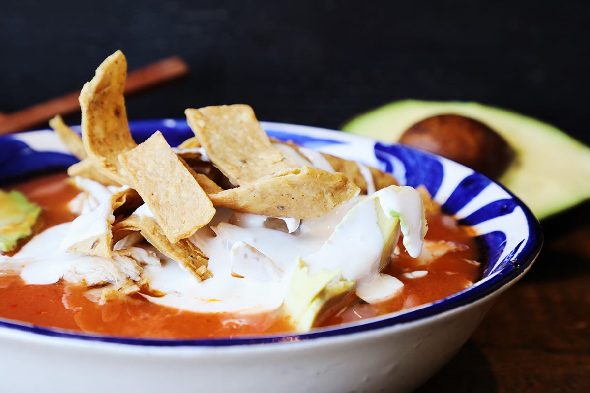 A perfect bowl of authentic Mexican tortilla soup! Dig in!