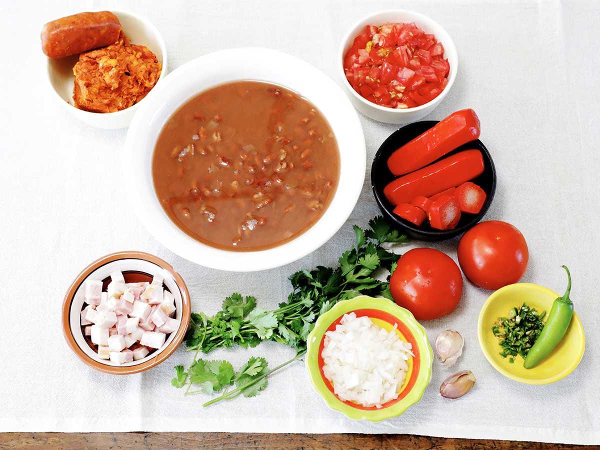 This frijoles charros recipe uses bayo beans cooked in broth as its star, so you'll need to whip up a pot of frijoles de la olla (beans in a pot) first. Note: caqnned beans will also work.