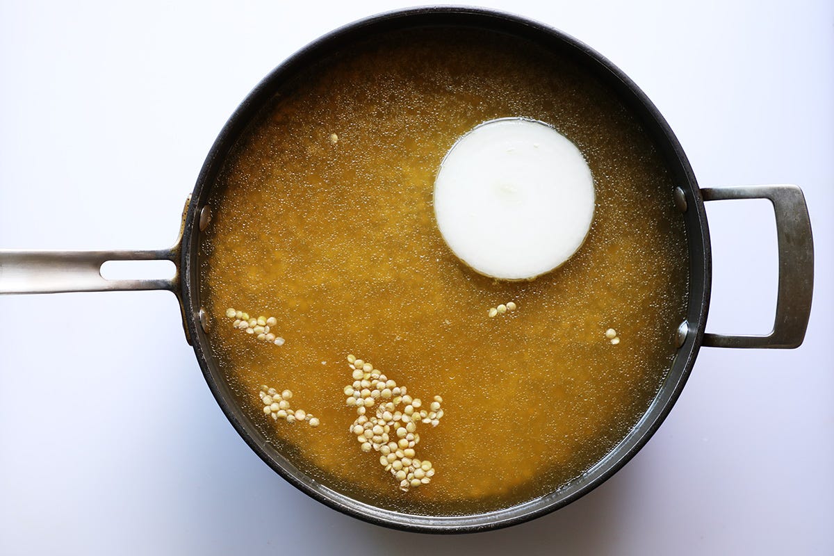 * On high bring to a boil. When the lentils have come to a boil reduce the heat to medium. Add 1 tsp. salt. Remove any foam that forms.
