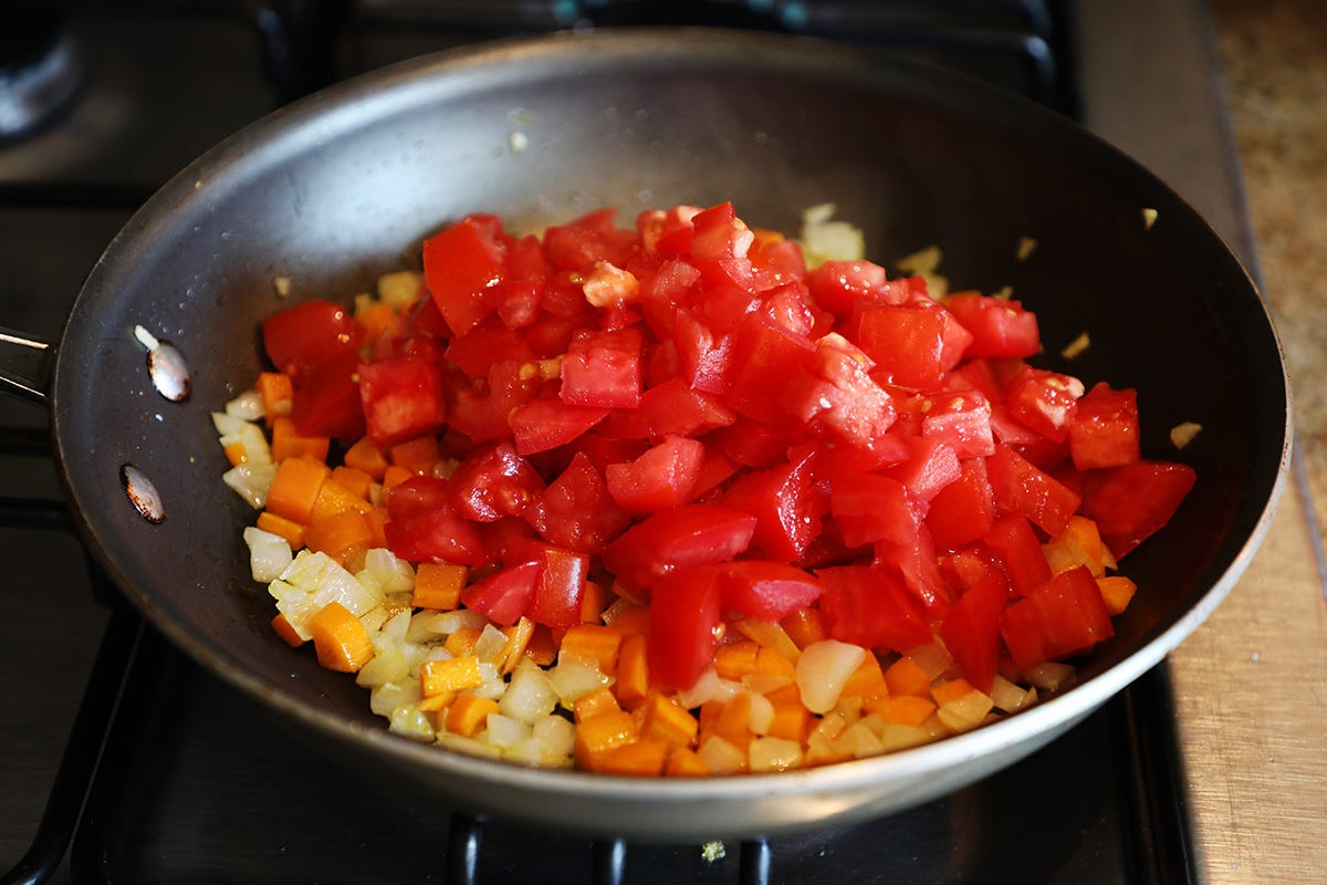 * Add the tomatoes and cook until the tomatoes are just starting to break apart.