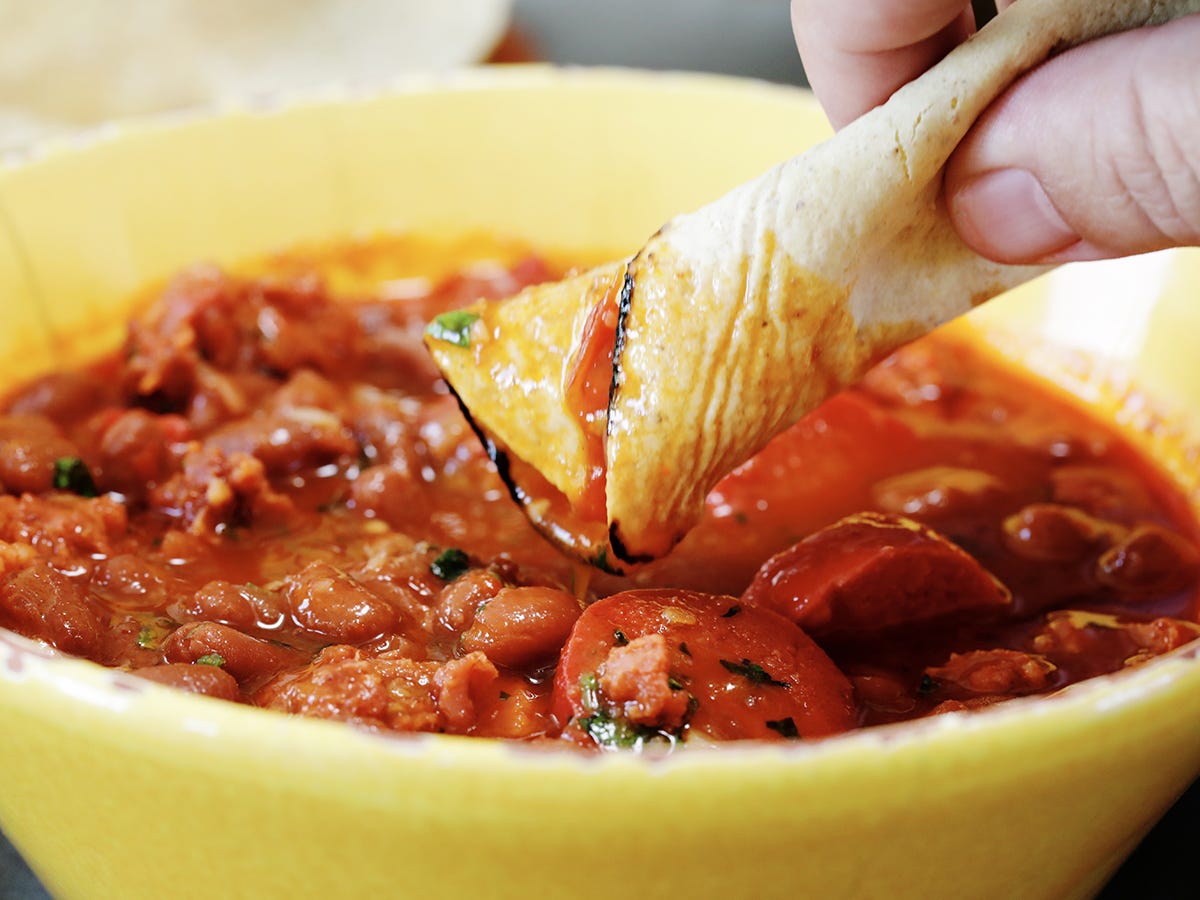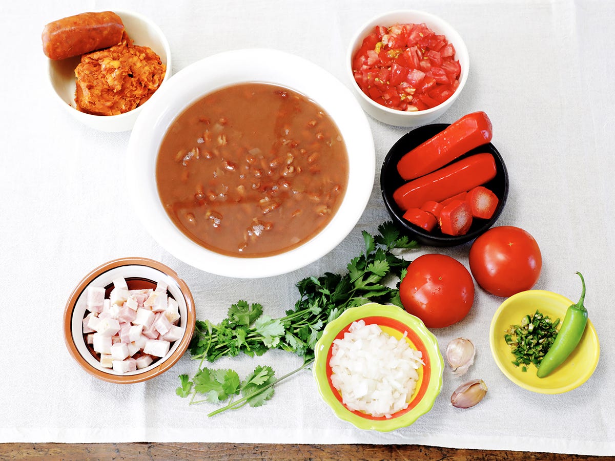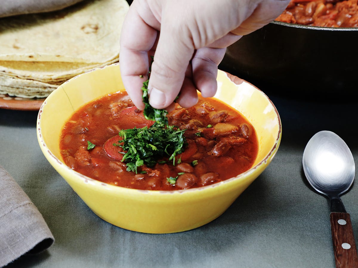 Frijoles charros is a hearty, traditional Mexican dish named after Mexican cowboys, or charros. It is said that, after a long day on the ranch, charros would gather together to share a meal of beans, vegetables, sausage, and anything else they had on hand, cooked over an open fire. Reward your own hard day’s work with a delicious bowl of frijoles charros using our step-by-step recipe.