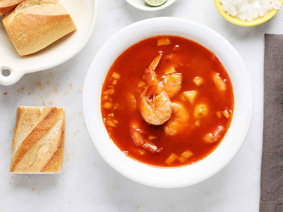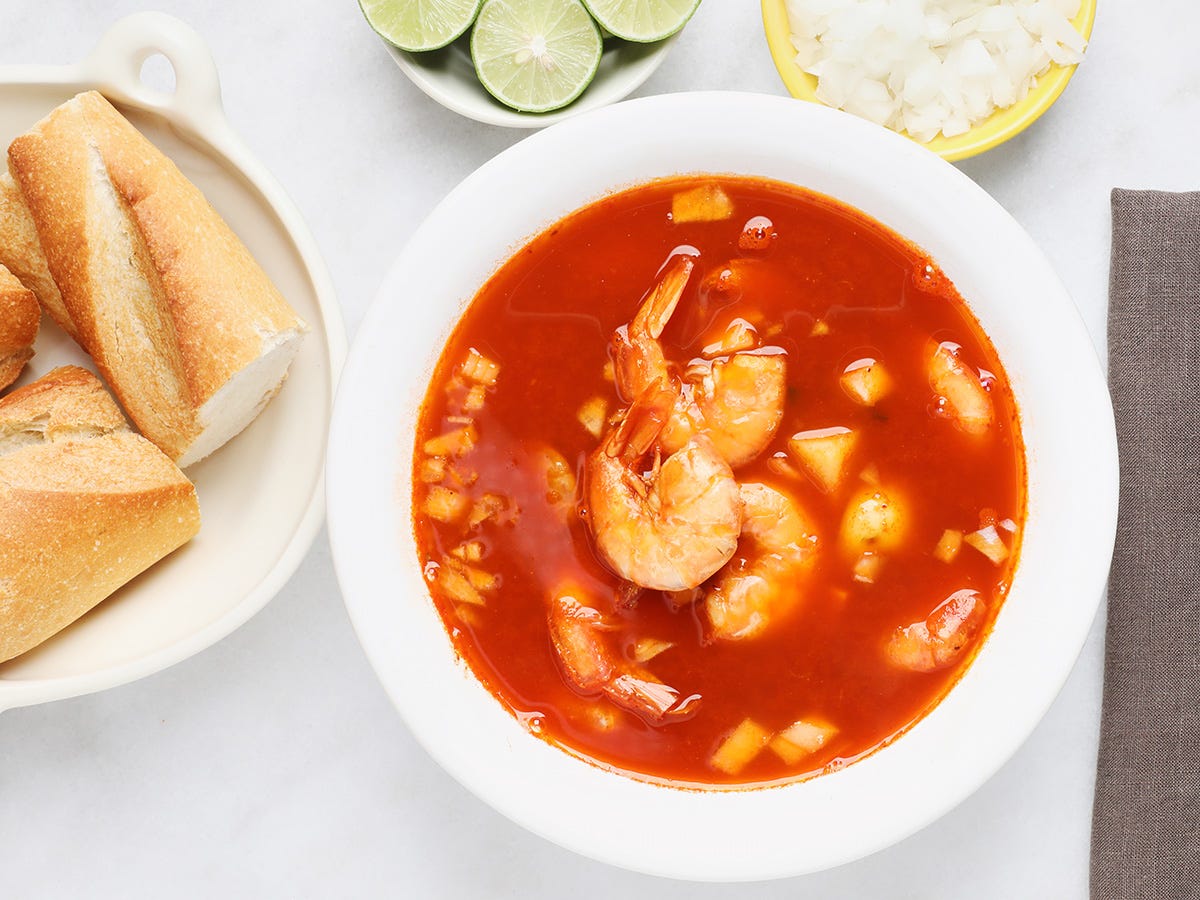 Serve this delicious shrimp soup with a squeeze of fresh lime juice, a sprinkle of onions and a chunk of crusty bread or warm corn tortillas.