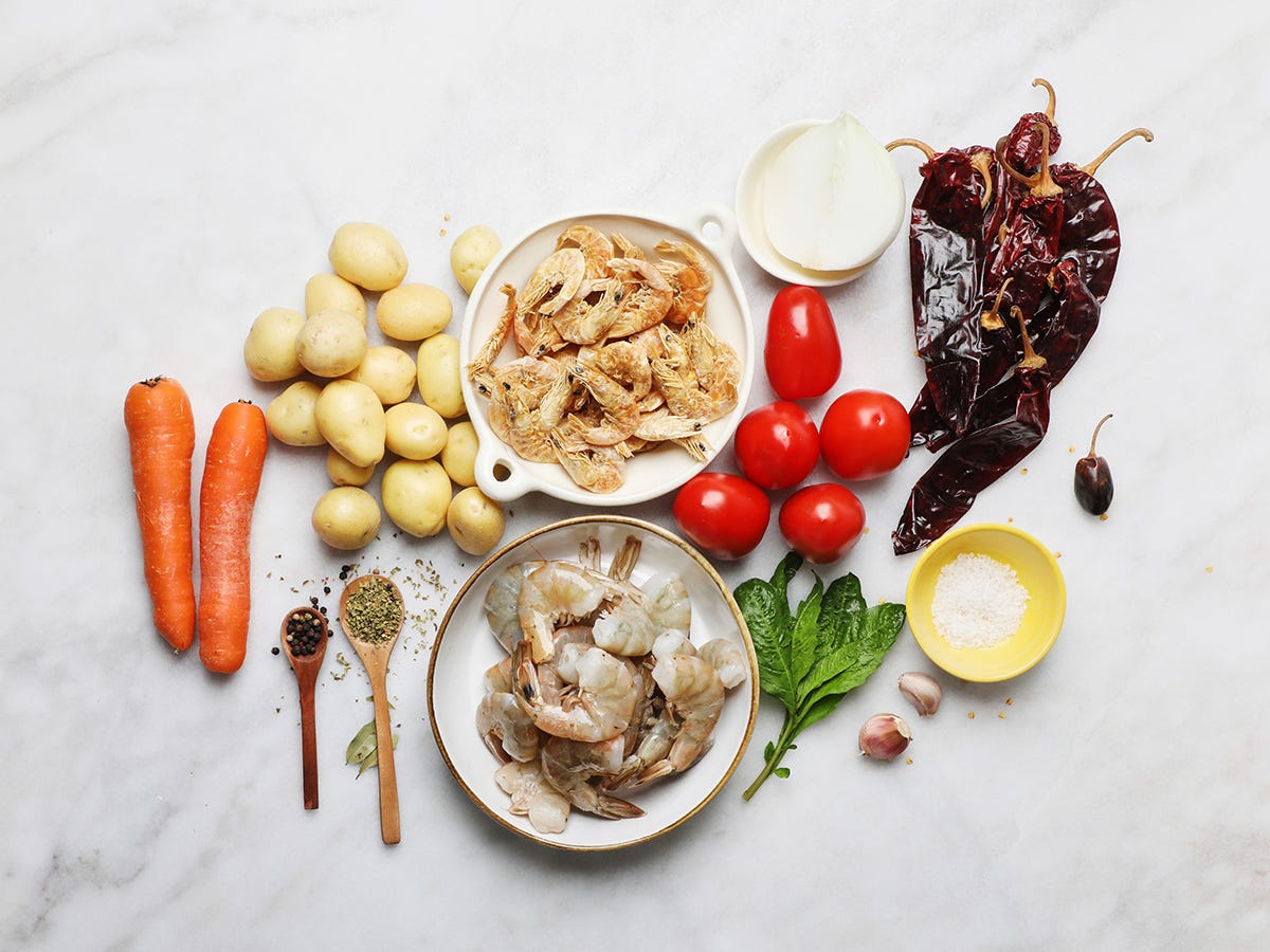 This Mexican shrimp soup brings together fresh shrimp, dried shrimp, guajillo and cascabel chilis, and tender vegetables all in one spicy bowl of comfort food. The dried shrimp adds a distinct salty flavor to this dish, which you can have as an appetizer or a complete entrée.
