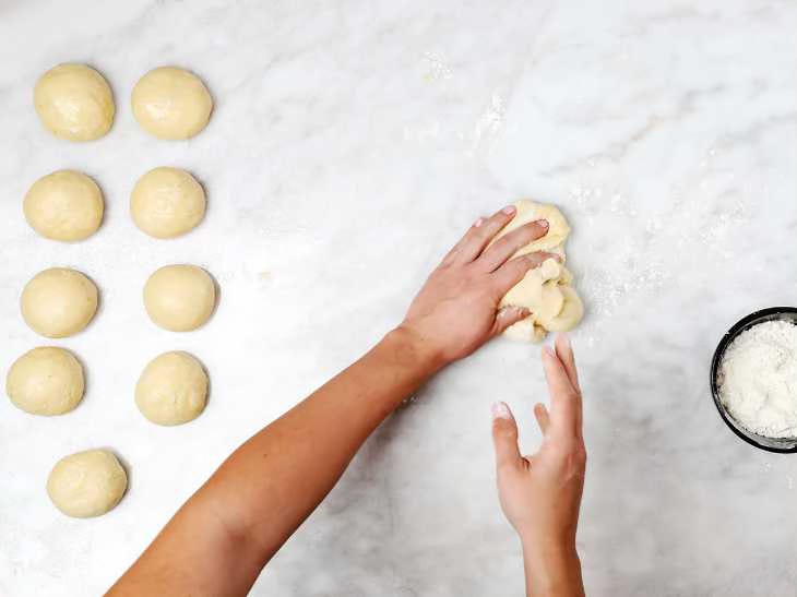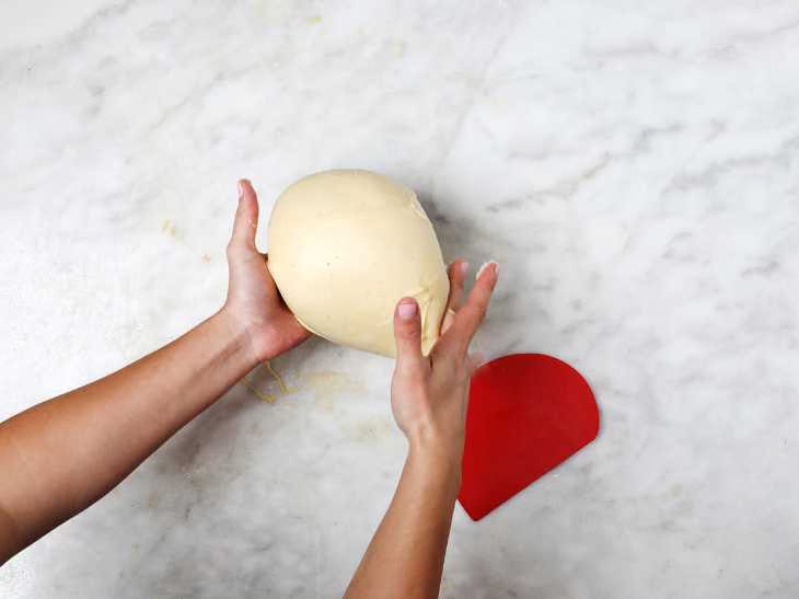 Place the kneaded dough on your work surface. Using your hands, form the dough into a ball. Keep working the dough until you get a perfect ball of dough.