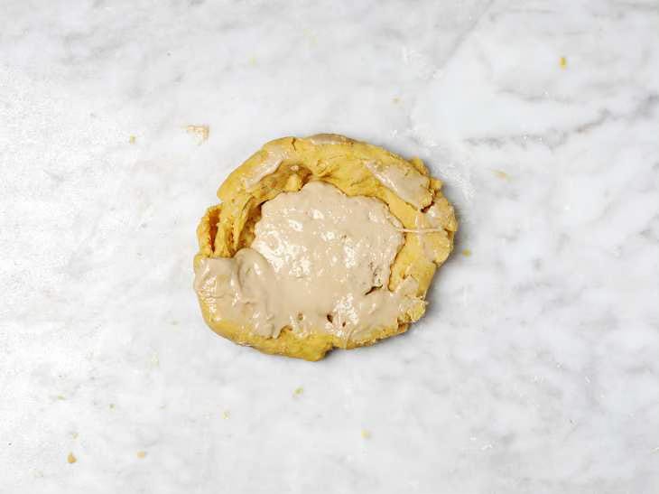 Push the dough down and make an indentation in the center.