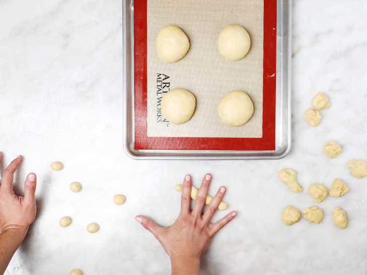 Form nine, 3-ounce balls of dough. Use a kitchen scale to weigh each piece.