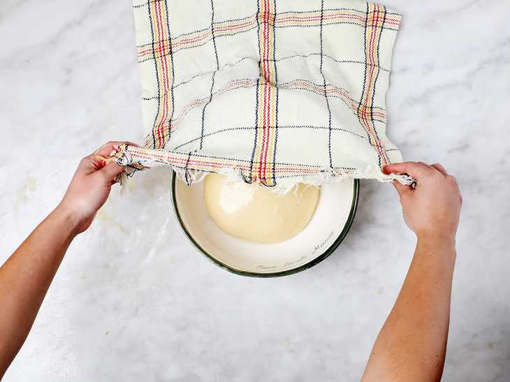 Place the bowl in the warmest part of your kitchen and allow the dough to rise until it doubles its original size.
