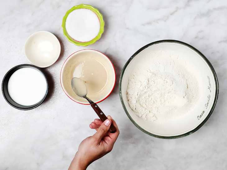 In a small bowl, add 4 tablespoons of flour, 2 tablespoons of sugar and the dry yeast.