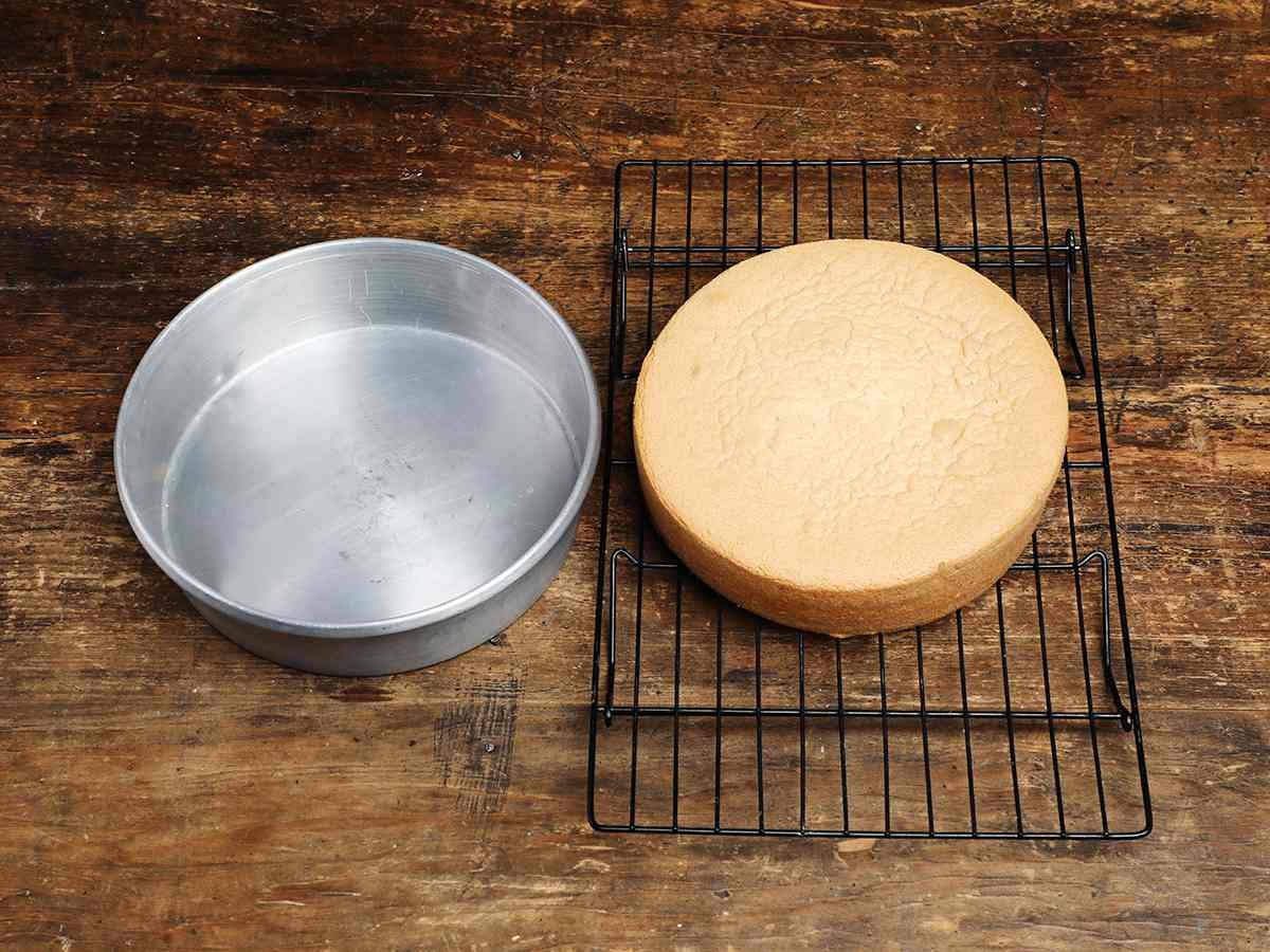 Remove from the oven, let sit five minutes, and then turn the cake out onto a wire rack to cool.