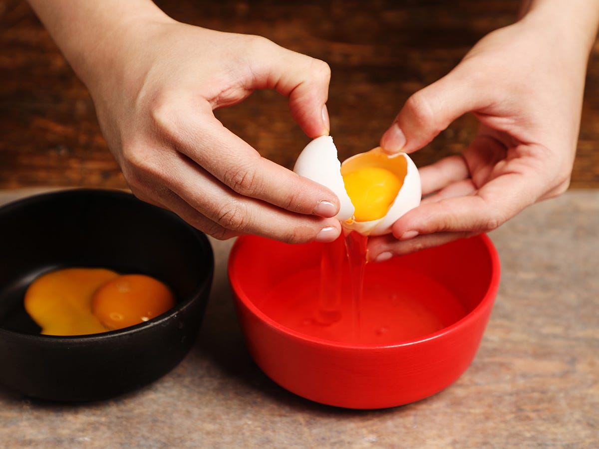 Preheat oven to 350 degrees F and bring eggs to room temperature for easier beating. Separate egg whites and egg yolks into two small bowls.