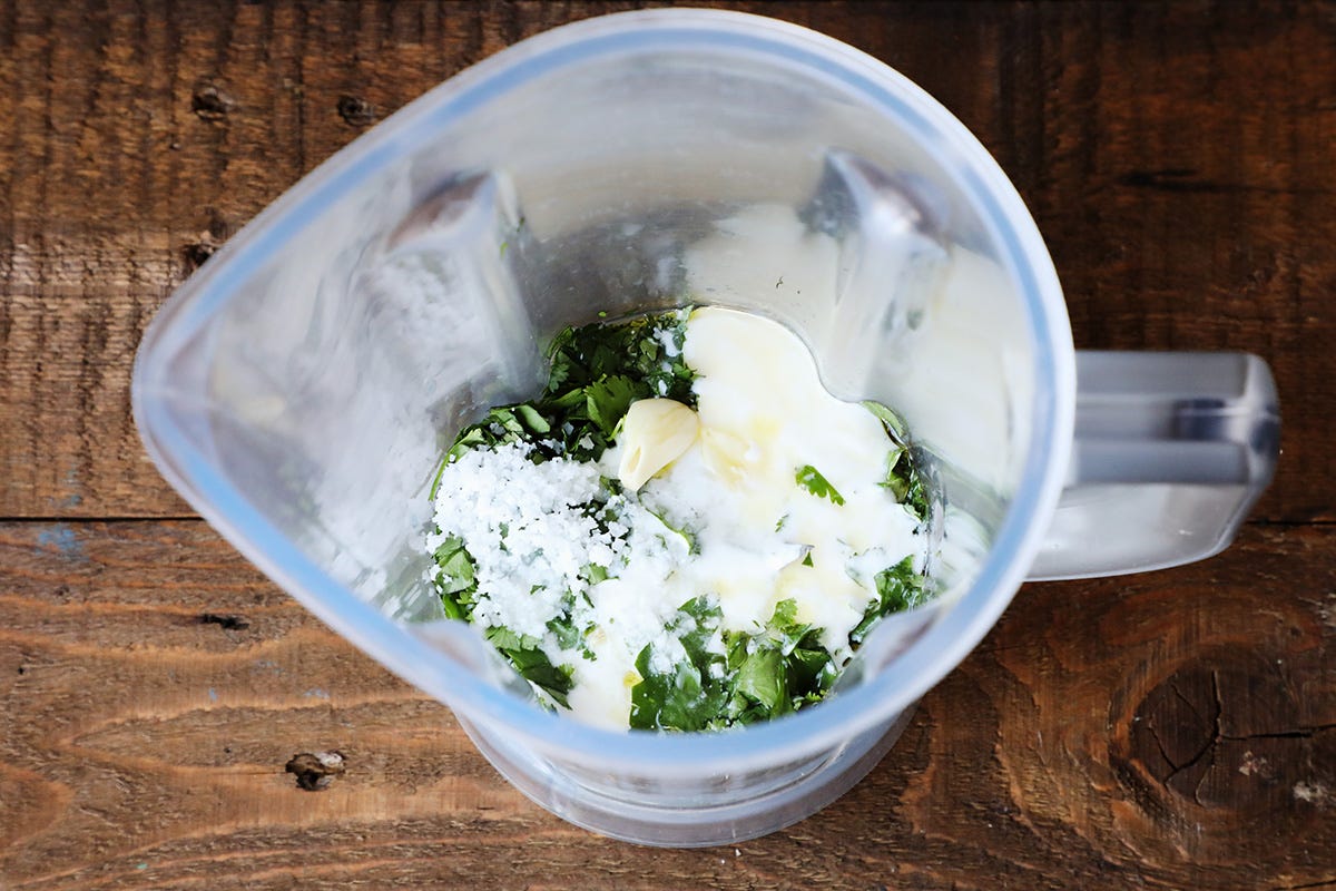 Greek yogurt gives the dressing body, fresh cilantro, garlic, and lime the tangy taste.