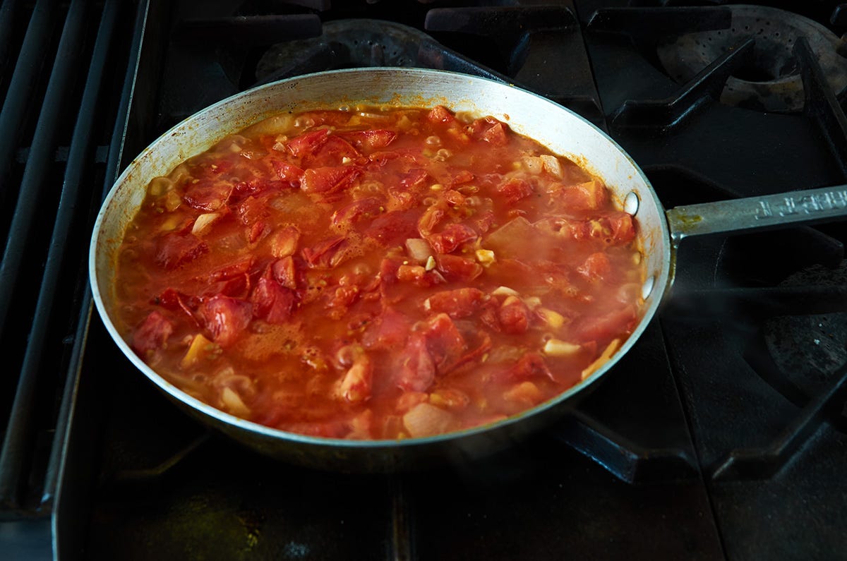 Reduce the heat to low and cook for 15 minutes until the tomatoes have given off much of their liquid.